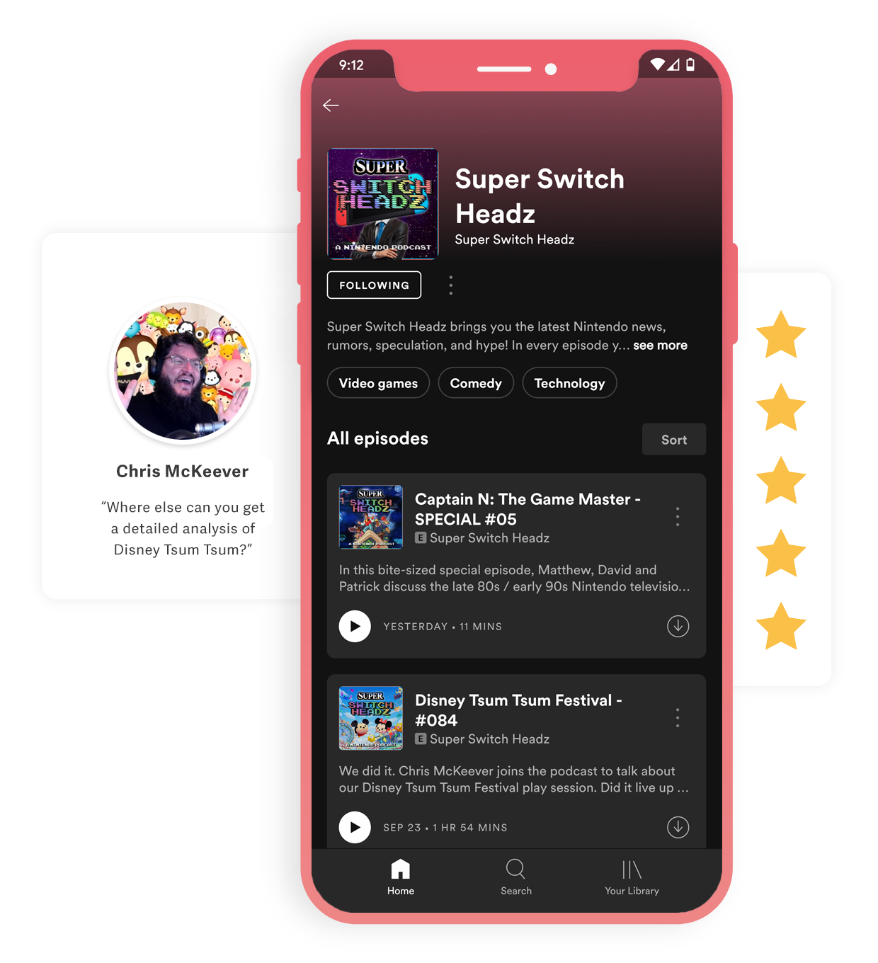 In addition, I help produce, edit, and co-host the Super Switch Headz affiliated mini-podcast Playing it RONG! in which myself and British streamer AntKeepsGaming play two random old Nintendo games and discuss them each episode.